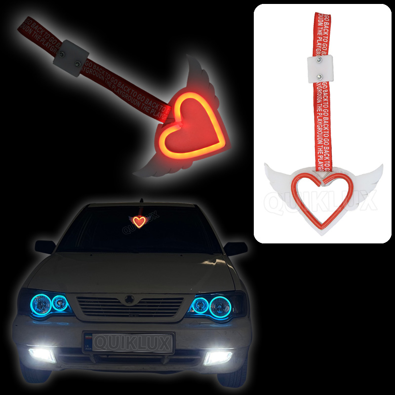 این اویز زیبا به راحتی به آینه جلو خودرو آویزان شده و جلوه ای زیبا به خودرو به خصوص در شب می بخشد.قلب داخل بال از نوع نئون است که نوری یکنواخت تولید کرده و یکی از اکسسوری های جذاب برای کسانی است که به دنبال زیبا سازی فضای داخل خودرو خود هستند.