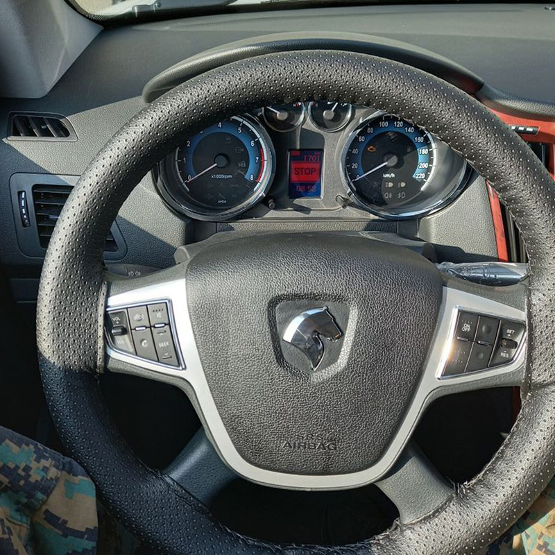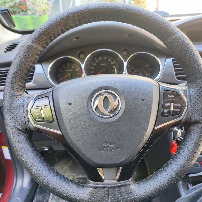 این دور فرمان به صورت دوختنی عرضه می‌شود و داخل بسته نخ مخصوص وجود دارد تا بتوانید آن را دقیق و محکم روی فرمان نصب کنید. پس از نصب، جلوه‌ای مشابه فرمان‌های فابریک خودرو خواهید داشت.